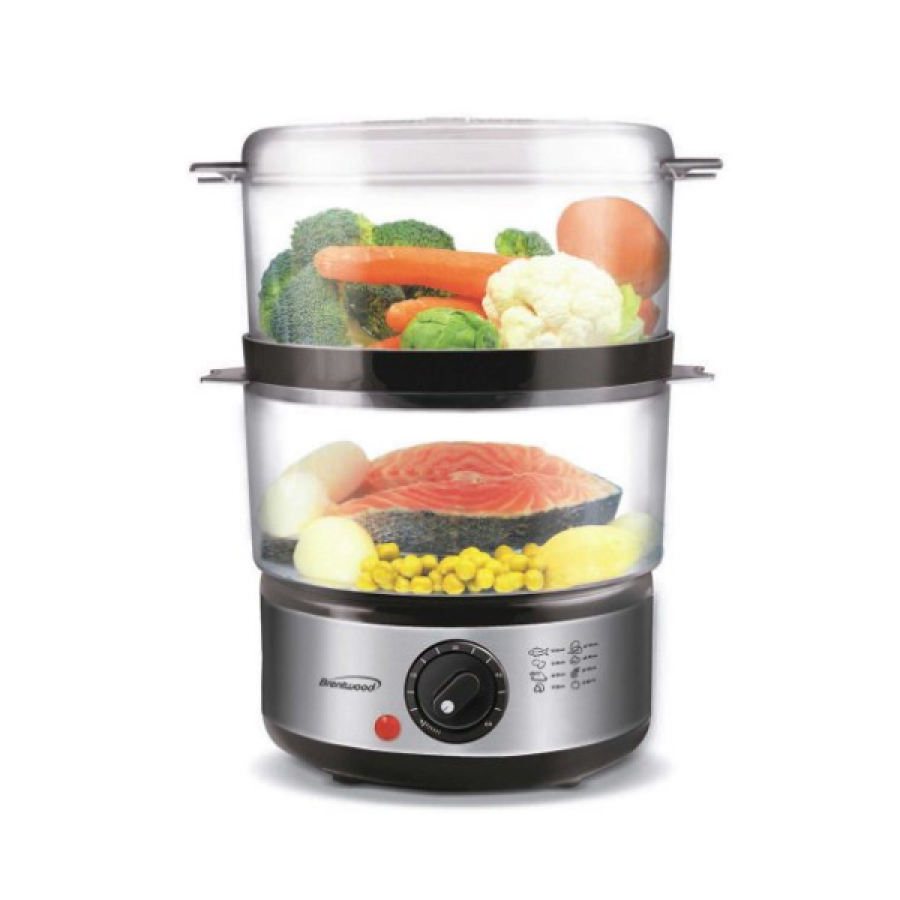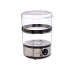 - Material: The unit is made with a stainless steel base and clear plastic steam trays and lids.
