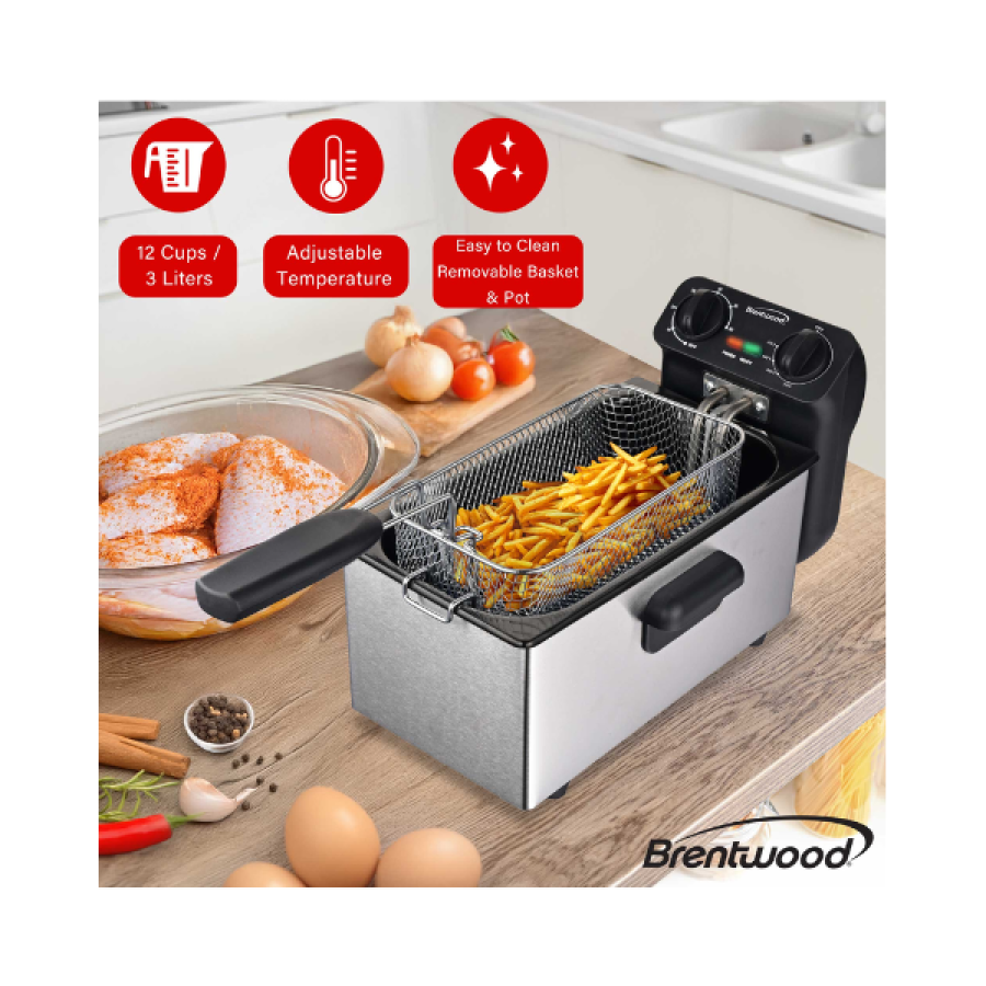 Brentwood DF-730S 1500w 3L / 12-Cup Electric Stainless Steel Deep Fryer with Removable Basket