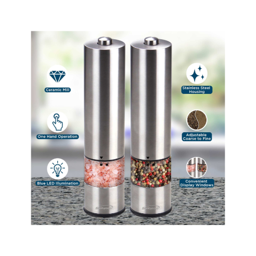 Brentwood Electric salt and Pepper Mills- Stainless Steel