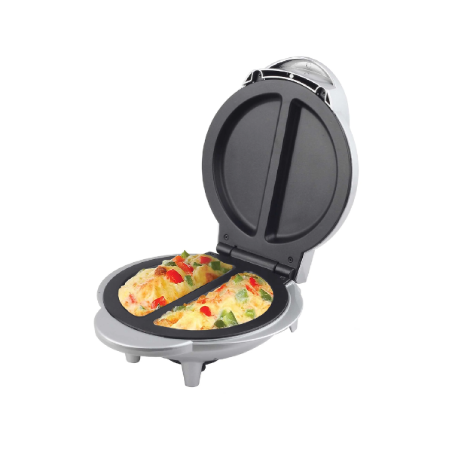 Use the powerful 1000 watt Brentwood TS-255 Non-Stick Omelet Maker to cook 2 perfect omelets in just 10 minutes. Easily slide your omelets out of the non-stick plates. Power and pre heat indicator lights inform you when the plates are hot and ready. Stands upright with convenient cable wrap for incredibly small storage. For safety, the omelet maker will automatically shut off if it senses overheating.