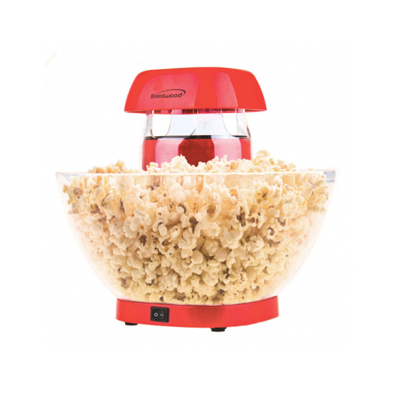 Use the Brentwood PC-490R Jumbo 24-Cup Hot Air Popcorn Maker to pop popcorn for the whole family! Our popcorn maker uses hot air instead of oil to pop kernels for a guilt free, healthy snack. Watch popcorn shower into the built-in bowl. Simply remove the cover and lift the bowl off the popping tower to enjoy immediately. Try a variety of different flavors by following all the included gourmet recipes. Quick removable parts make clean up a breeze. Bring a classic aesthetic to your kitchen with this red popcorn maker.