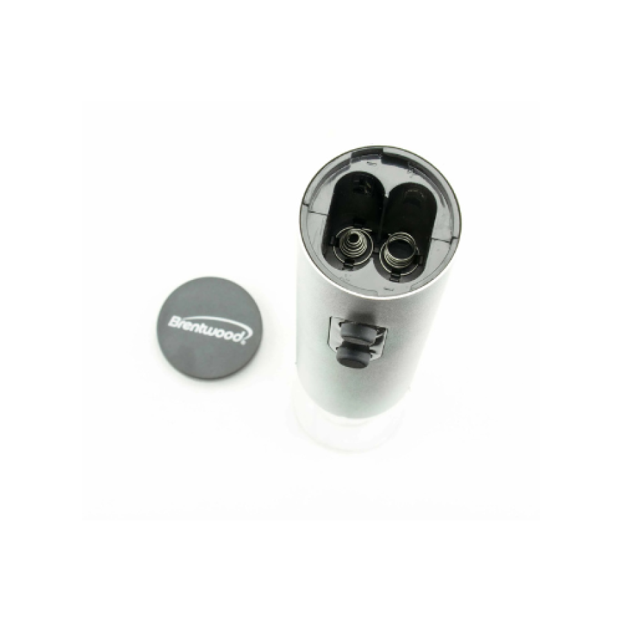 | The Brentwood Electric Wine Bottle Opener with Foil Cutter, Vacuum Stopper, and Aerator Pourer is a great investment to enhance your wine tasting experience.  Effortlessly remove a cork in just 4 seconds with the push of a button. Impressive blue LED power light indicator illuminates as you remove a cork. Simply press the reverse button to release the cork. The screw is safely covered by a plastic housing reducing chances of accidents. Unlock the most desirable flavors using the wine aerator, removing unwanted compounds like sulfites and ethanol. Keep your favourite bottles of wine fresh with the included vacuum seal stopper. This electric wine bottle opener conveniently operates with 4 commonly found AA batteries. Sleek silver colour adds a sophisticated aesthetic to your kitchen. Features & Benefits • - Open 60+ Bottles with New Batteries • - Lightweight, Portable Design • - 4 Blade Precision Foil Cutter • - Flavor Enhancing Aerator Pourer • - Fresh Seal Vacuum Stopper • - 4 Seconds to Remove a Cork • - Colour: Silver  |