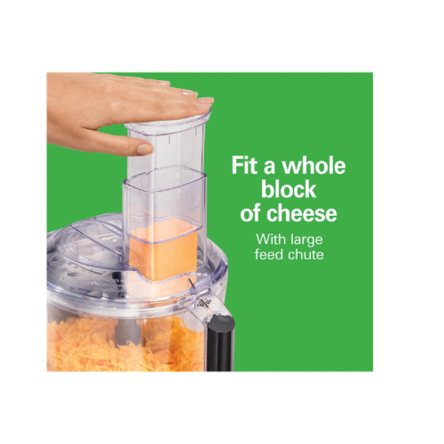 The Hamilton Beach Food Processor quickly chops, purees, fine shreds, coarse shreds, slices and crinkle cuts. Fast and easy to use, this versatile tool will make food prep a breeze using it's two reversible disks.