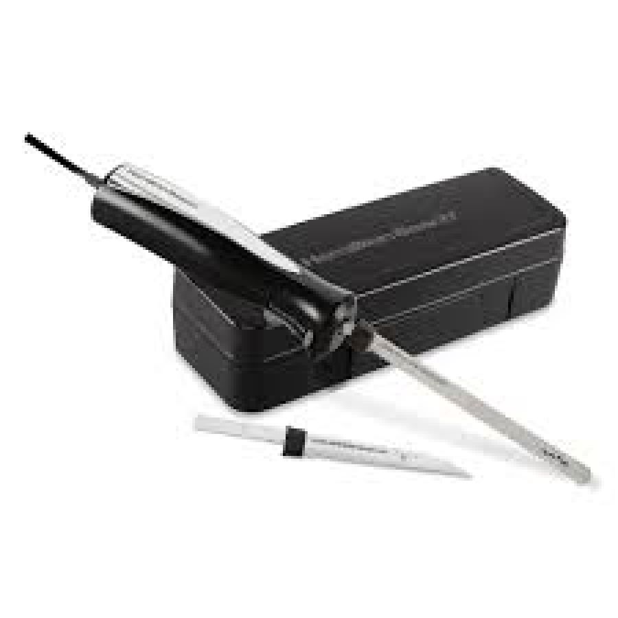 The Hamilton Beach Electric Knife Set is a versatile kitchen tool featuring a powerful motor and reciprocating stainless steel blades, designed for effortless and even slicing of meats, bread, and even crafting foam. It typically includes a carving fork and a compact case for convenient storage.