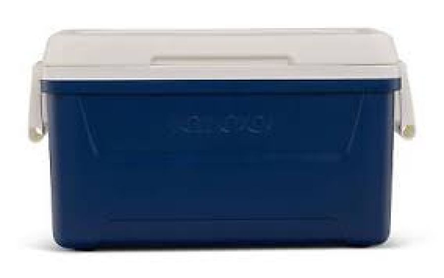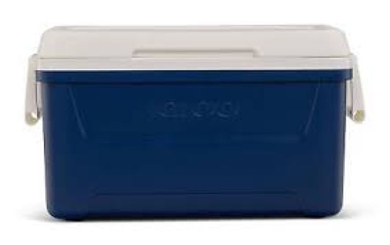 The Igloo 48 QT Laguna is a durable, hard-sided cooler with Cool Riser Technology for better cooling, keeping up to 76 cans cold with its Ultratherm insulation, and features an easy-to-clean, stain/odor-resistant liner, swing-up handles for portability, and an eco-friendly Thermecool foam design, ideal for family outings and events.