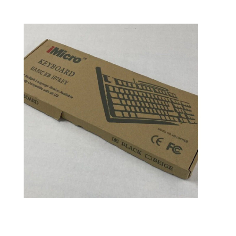 The iMicro Keyboard Basic is a 107-key USB wired keyboard, typically a standard QWERTY layout, offering a basic yet reliable typing experience.