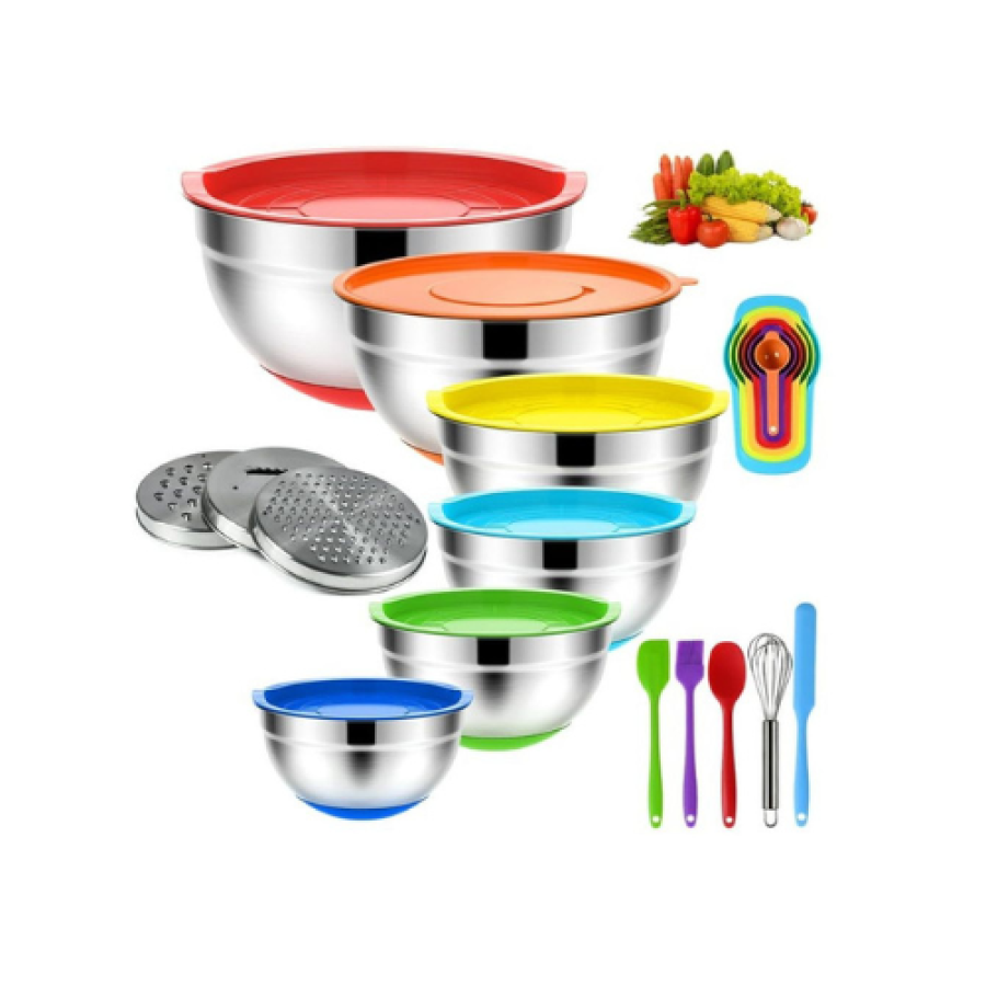 - -Versatile and Space-saving: This versatile stainless steel mixing bowls with lids set is perfect for all your food prep needs. This nesting mixing bowls with lids set are dishwasher safe, making them easy to clean and maintain. Their nesting design allows you to stack and store them easily, saving you valuable counter and storage space. Whether you’re an experienced cook or just starting out, these stackable mixing bowls with lids will quickly become a staple in your kitchen.